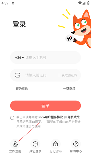 2、在登录界面点击【立即注册】选项,进入注册页面。