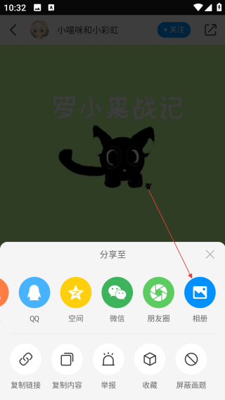4、在分享界面,选择【相册】选项,即可将该作品内容保存至手机相册。