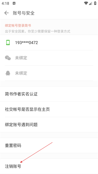 4、在【账号与安全】页,找到【注销账号】选项进行操作。