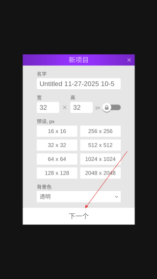 2、在新项目页设置画布参数后,点击【下一个】,进入模板选择界面。