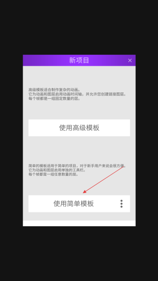 3、在模板选择页,点击【使用简单模板】,进入对应模式的创作界面。
