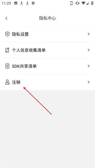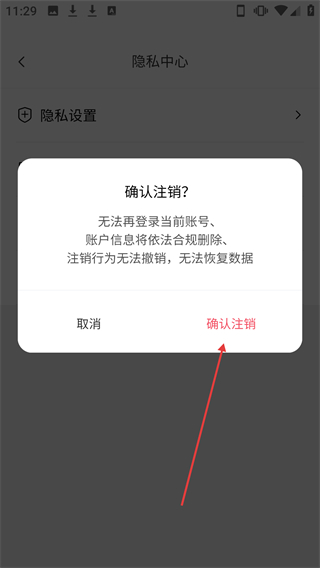 3、在隐私中心页面点击【注销】选项,会弹出确认注销的弹窗。