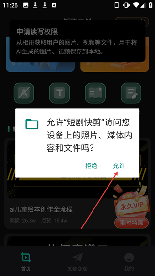 2、当弹出弹窗请求时,点击【允许】按钮以授予权限。