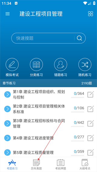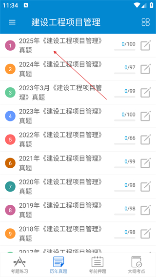 1、点击【历年真题】,进入包含各年份真题的列表页面。