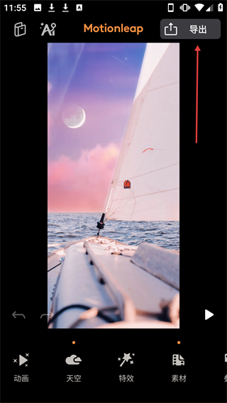 4、在【Motionleap】编辑页面完成特效处理后,点击右上角【导出】按钮,即可保存处理后的内容。