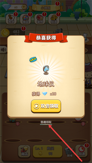 4、达成目标后弹出奖励界面,选择【普通领取】可获取20钻石奖励,也可选择双倍领取获得更多资源。