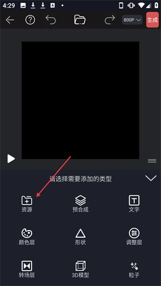 2、在视频制作界面点击【资源】选项,可打开素材来源选择弹窗。