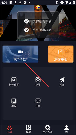 1、在工具页面点击【制作视频】按钮,可进入视频制作界面。