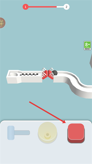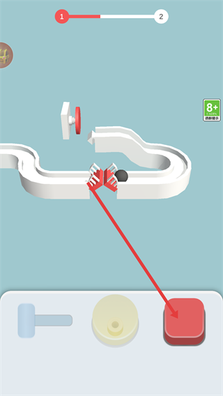 2、游玩过程中,点击底部红色按钮,控制轨道机关,使小球在轨道上继续移动,推进关卡进度。