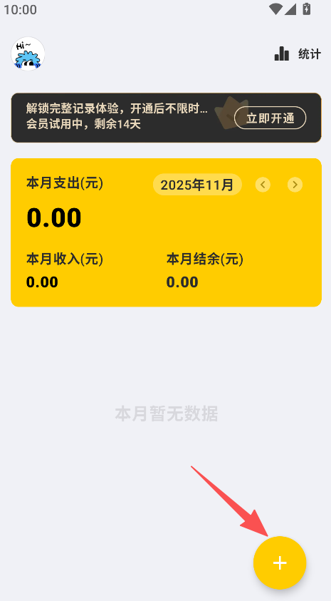 3、设会员试用机制,当前试用剩余14天,开通可解锁完整记录体验,同时操作流程围绕记账展开,提升记账的连贯性。