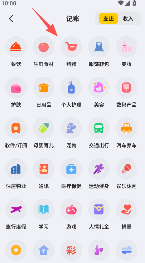 2、消费分类细致全面,涵盖餐饮生鲜购物等多类日常消费场景,分类标识明确,减少记账时的分类选择成本。