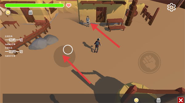 2、通过界面中的移动控制区域,操控角色向场景内的目标NPC方向移动,靠近该交互对象。