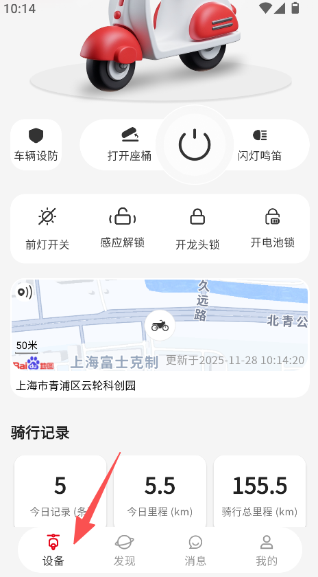 2、骑行记录数据清晰,含今日记录、里程等信息,便于掌握车辆使用情况,提升车辆使用的信息透明度。