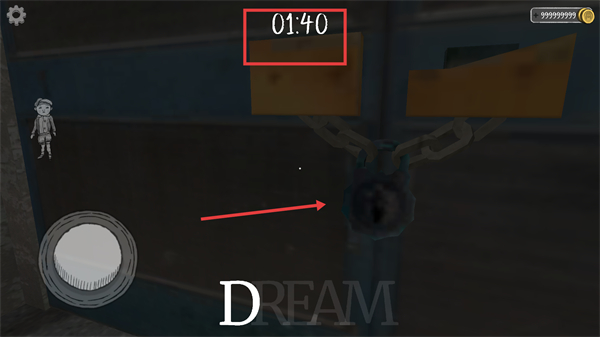 4、随着时间流逝(剩余01:40),需加快探索节奏,找到锁链等机关的解锁道具,避免超时导致关卡失败。
