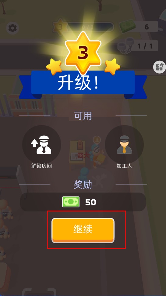 4、升级选【解锁房间】或【加工人】,领50元奖励扩展设施,提升效率解锁更多功能优化运营。