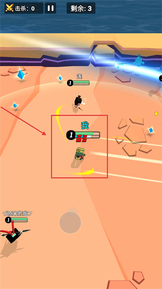2、战斗中控制【我】的角色移动,利用攻击键攻击敌人,同时注意躲避敌人的攻击以保持生命值。
