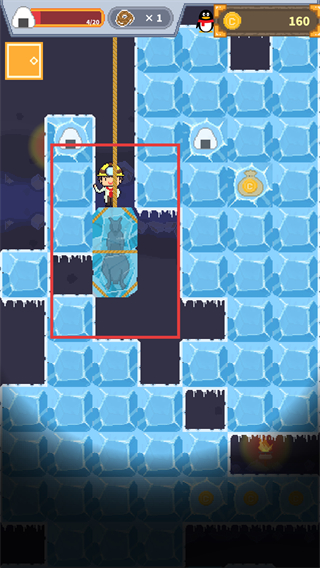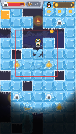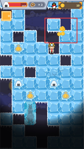 2、角色移动后会触发冰面砖块的位置变化,可利用这一机制靠近高处的金币堆,提升金币收集效率。
