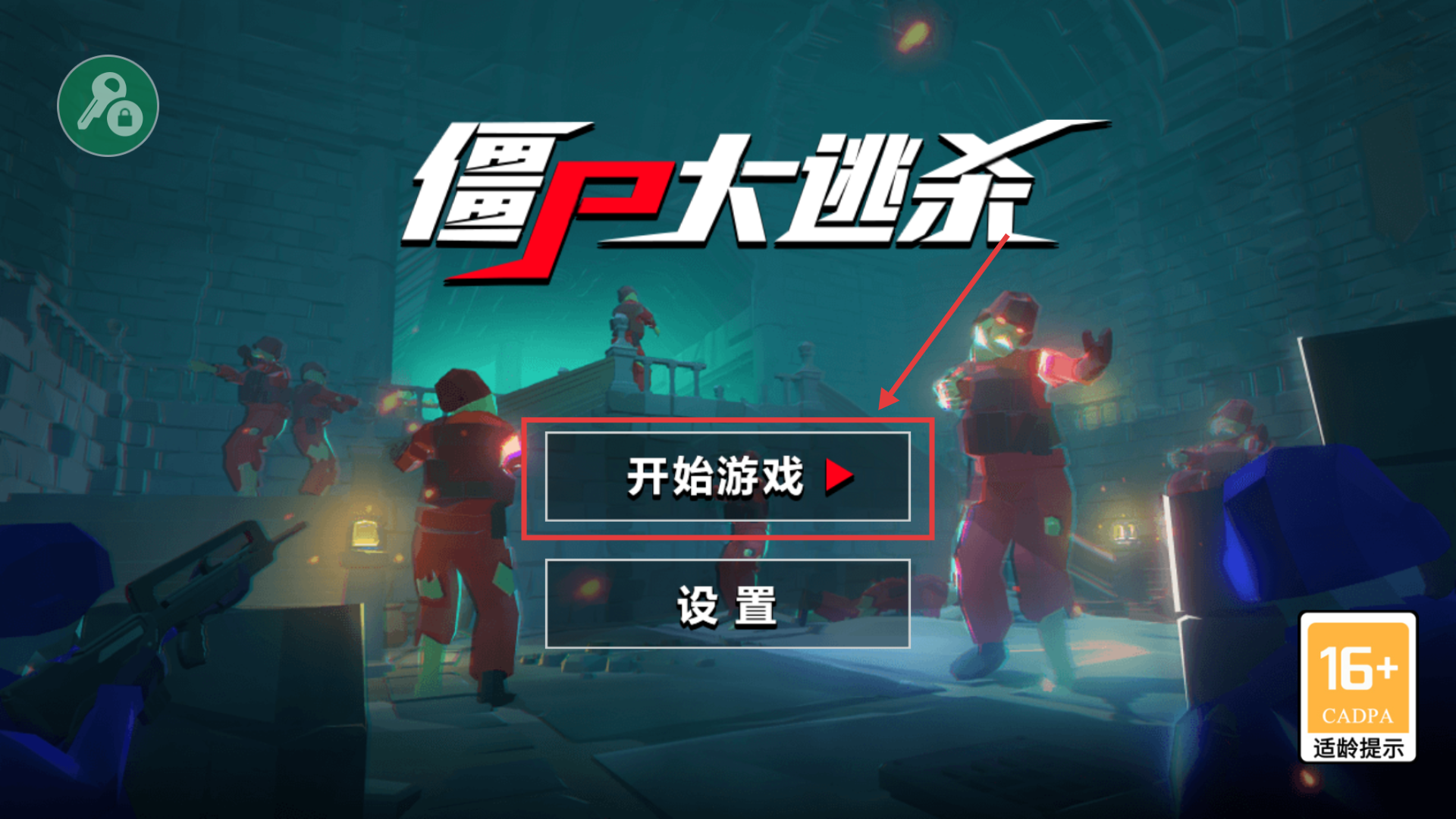 1、点击界面中的【开始游戏】按钮,即可进入后续的模式选择环节,开启你的僵尸逃杀之旅。