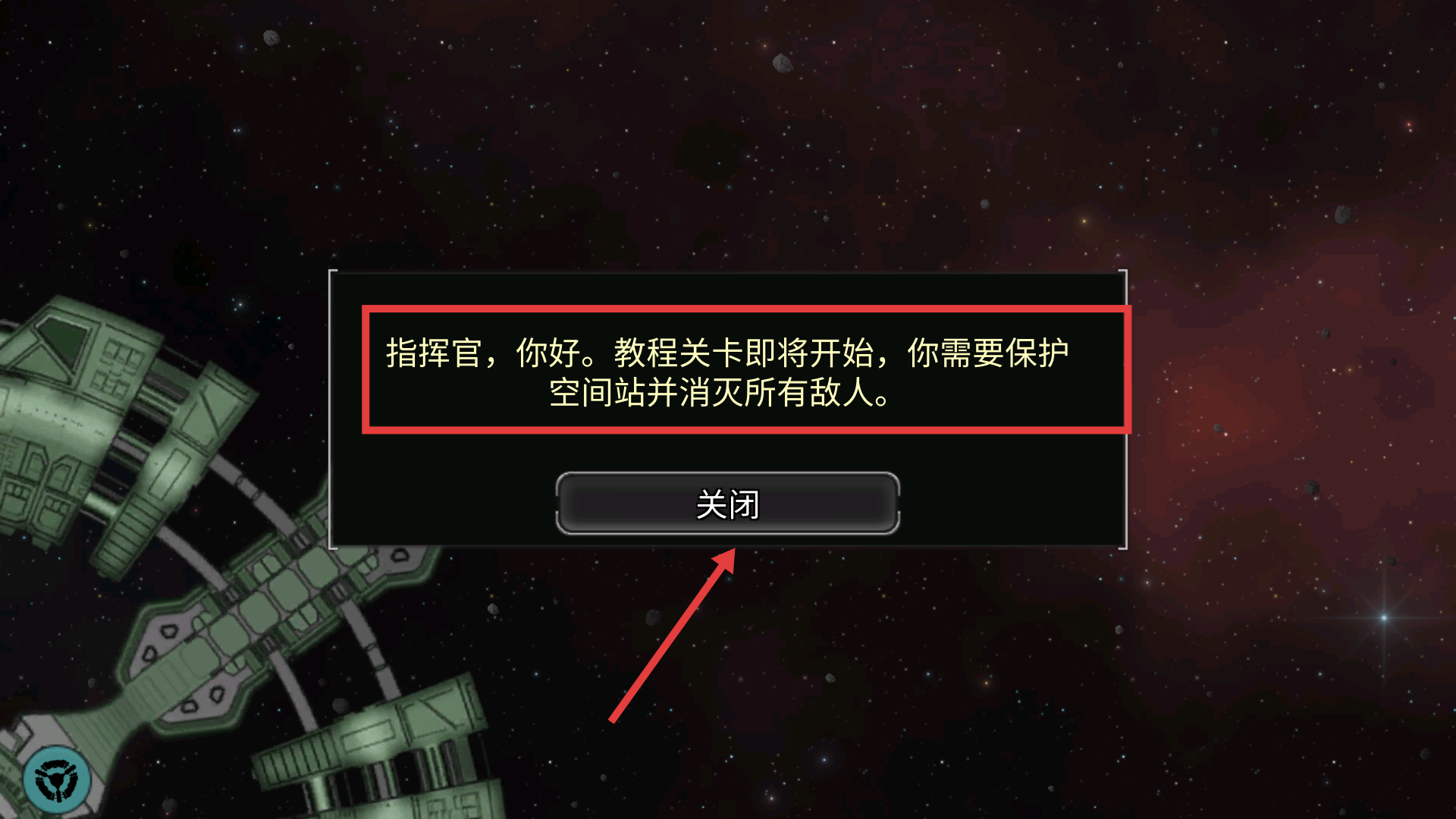 1、进入教程关卡时,需明确保护空间站并消灭所有敌人的任务,先处理提示信息再开启战斗。