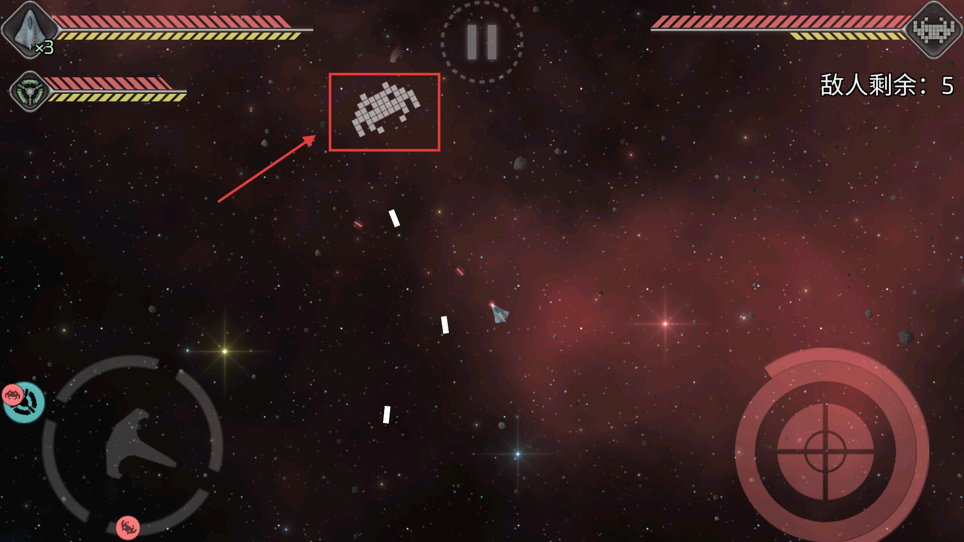 2、攻击并击败敌方战舰,同时保护空间站免受伤害,任何一方被摧毁都会导致失败。
