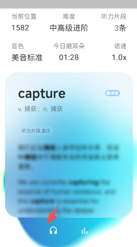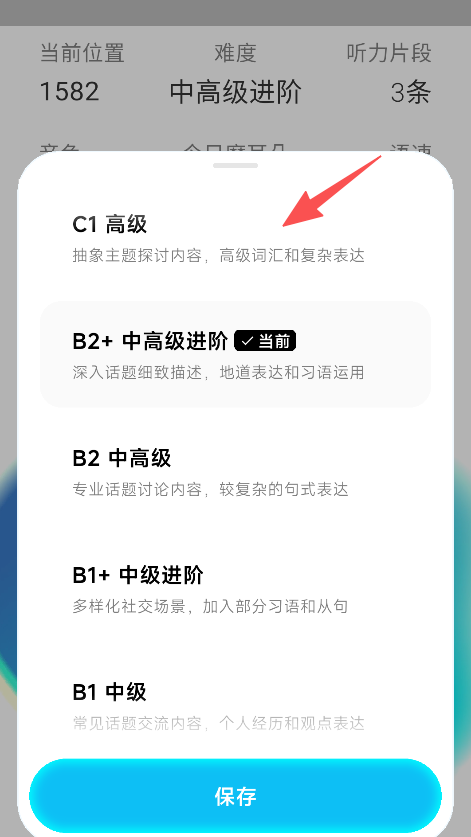 2、在学习页面,可设置听力难度级别。
