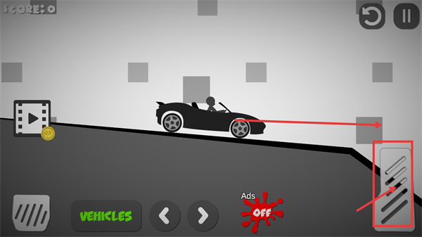 2、进入关卡后,通过右侧控制键操控车辆移动,可借助【VEHICLES】按钮切换载具,适配不同地形推进流程。