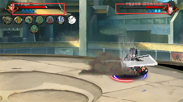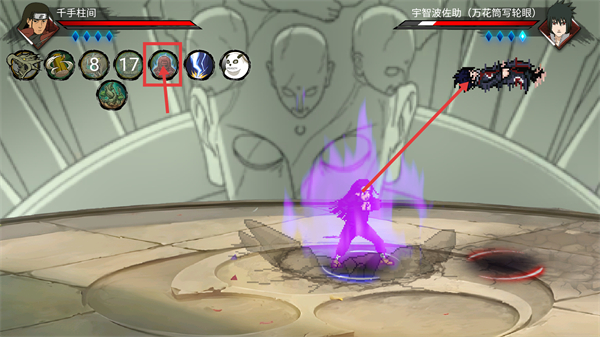 3、对战过程中留意【千手柱间】与【宇智波佐助-万花筒写轮眼】的血条状态,根据局势调整技能释放时机,保持输出节奏。