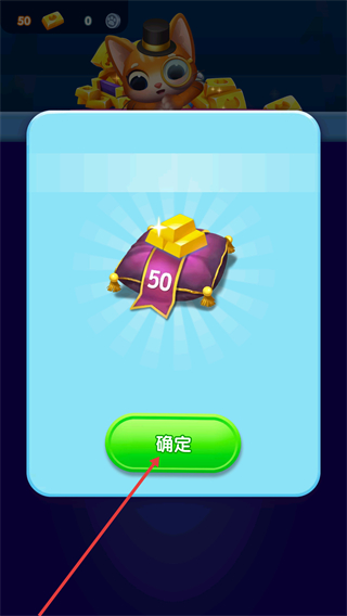 1、获得50金币奖励,点击【确定】按钮领取并进入关卡,金币可用于解锁道具或功能,助力后续宠物救援挑战。