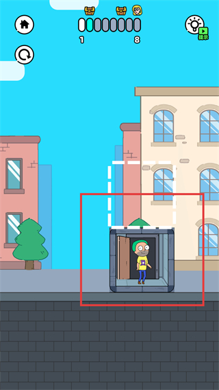 1、进入关卡后,角色位于电梯底部,顶部有开启的电梯门,需通过移动电梯区域来让角色抵达门的位置,完成通关条件。