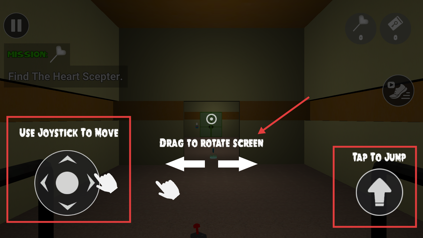 2、通过【摇杆】控制移动,拖动屏幕调整视角,点击【跳跃】按钮跨越障碍,探索场景区域。