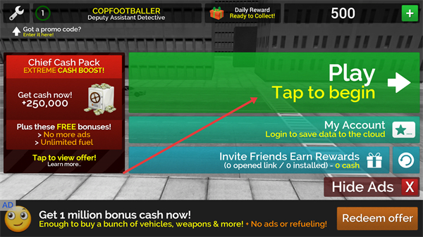 1、进入游戏主界面,点击【Play-Taptobegin】开始游戏。