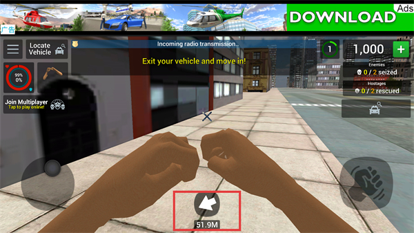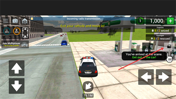 3、抵达任务场景后,需操作角色下车,前往加油站区域执行救援或缉拿任务。