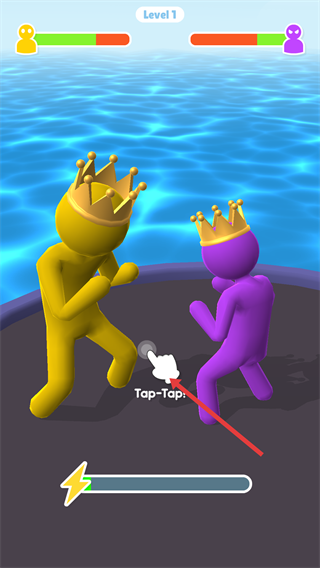 4、进入对战环节后,按照“Tap-Tap”提示点击界面触发攻击,与敌方小人展开对战,完成该关卡的最终挑战。