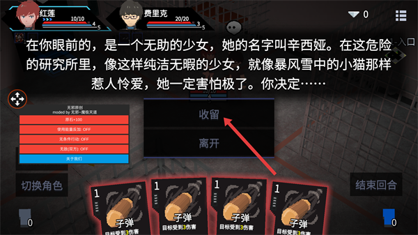 1、面对无助的辛西娅,选择【收留】将其纳入队伍,助力推进研究所内的冒险。