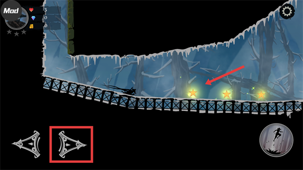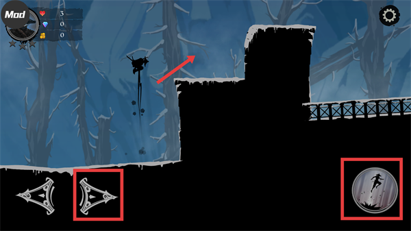 2、用【向右按键】调整位置,配合【跳跃按钮】操控角色跃起,就能顺利抵达高处平台。