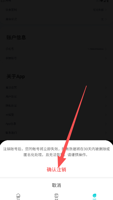 3、集成账户安全管理模块,支持用户进行账号注销等账户管理操作并附带风险提示。