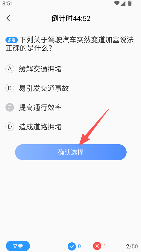 3、在模拟考试页面选答案,点击确认选择按钮。