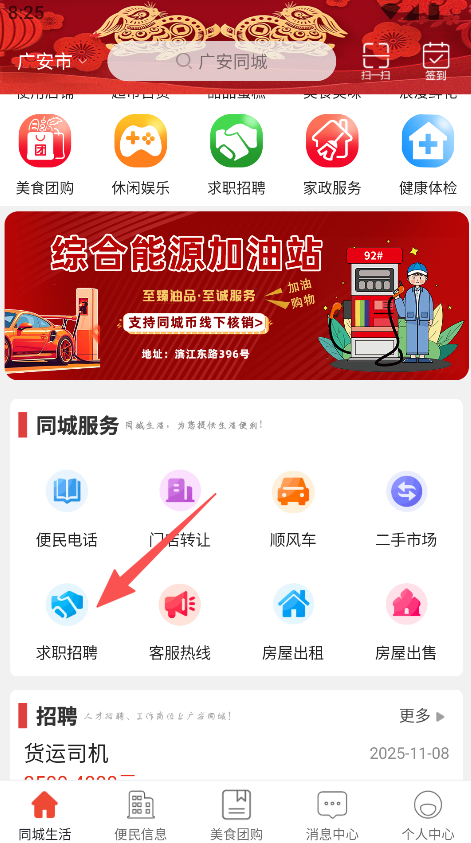《广安同城》是一款同城生活服务类软件,设美食团购休闲娱乐求职招聘家政服务等功能板块,同城服务含便民电话门店转让顺风车等内容,求职板块展示本地职位信息并支持投简历,房屋租售板块呈现本地房产信息,还含综合能源加油站等本地服务,覆盖本地生活求职房产等多类需求,简化本地事务办理流程,满足本地居民的生活服务对接需求。