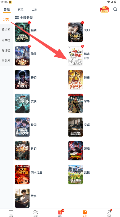 1、打开松鼠阅读首页浏览分类榜单推荐。