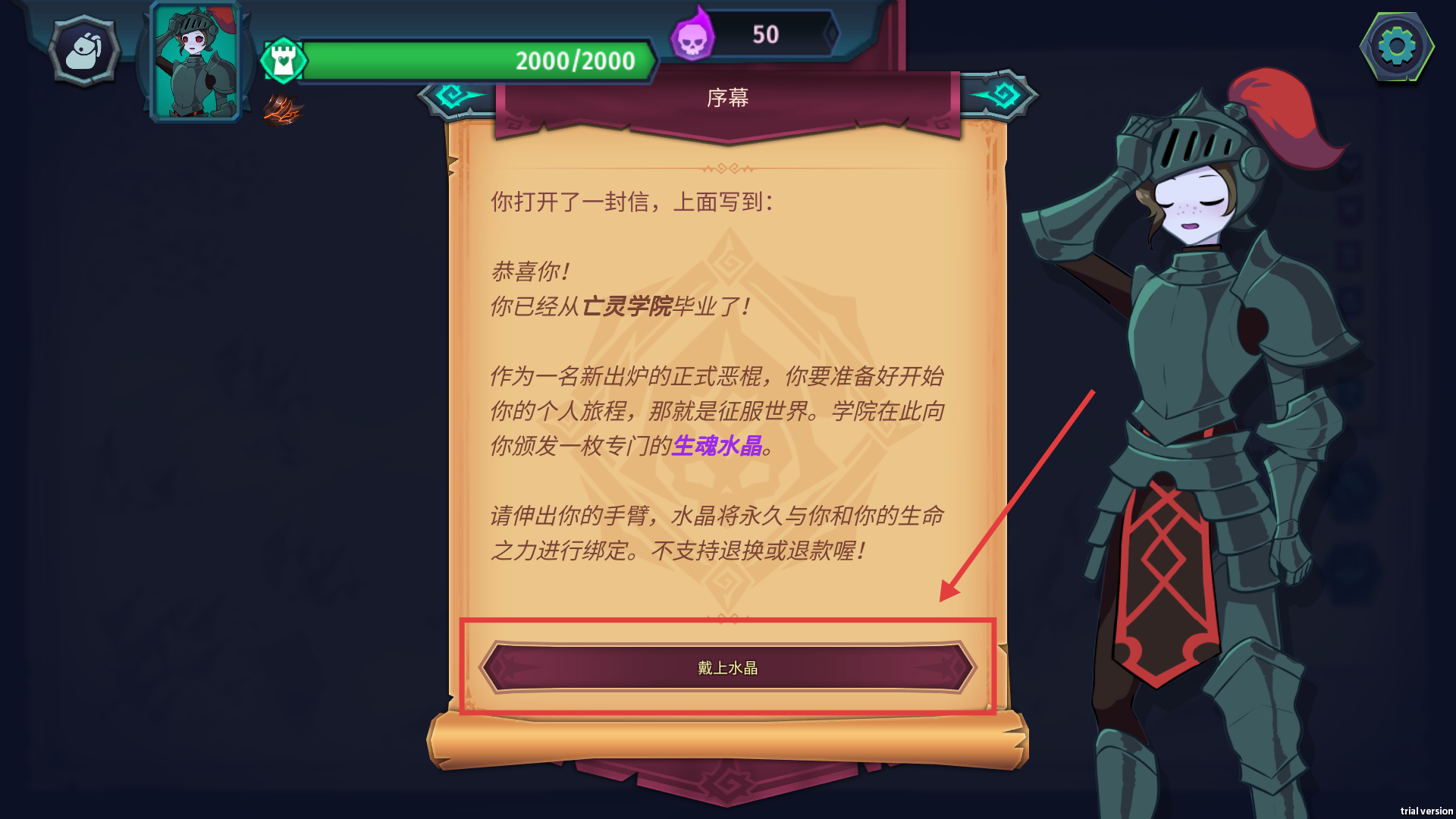 1、选择【骷髅法师】角色并装备【生命药水】,提升初期生存能力,为后续战斗做好准备。