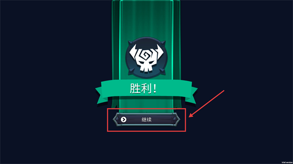 4、战斗胜利后点击【继续】按钮,进入下一关解锁新角色和法术,丰富卡组构建思路。
