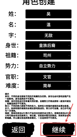 1、进入游戏后点击【新游戏】,开启策略征程第一步,随后进入角色创建界面设置信息。