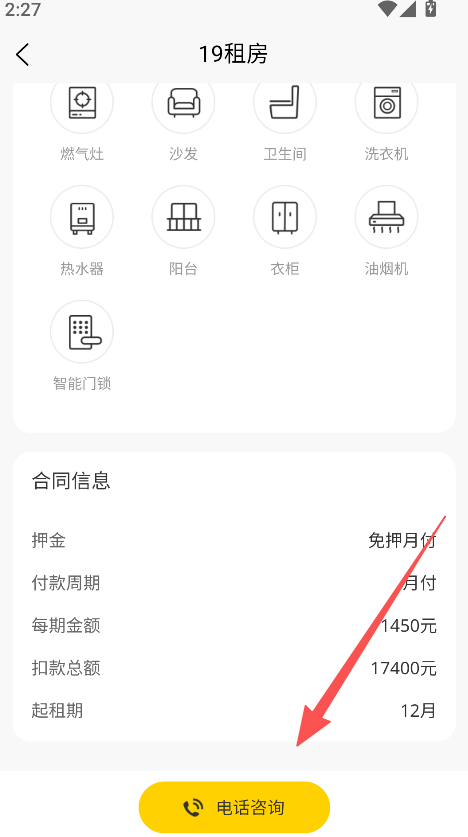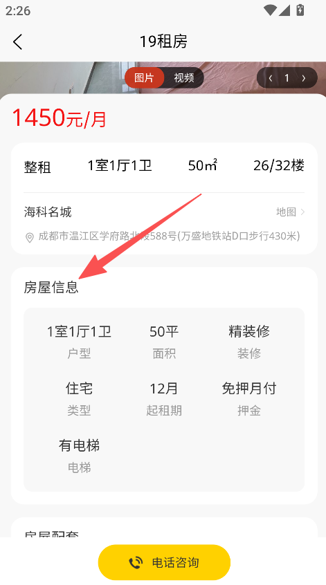 3、点击目标房源进入详情页,查看信息并电话咨询。