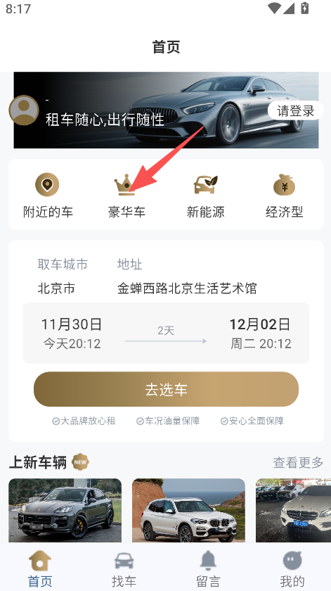1、提供车辆类别选择功能,含豪华车新能源等选项,助力筛选适配的租车车型。