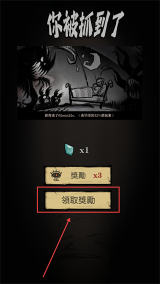 4、失败后点击【领取奖励】,获取1钻石,积累资源用于后续升级防御设施提升生存能力。