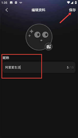 4、在【昵称】输入框填写新内容后,点击右上角【保存】按钮,即可完成昵称的修改操作。
