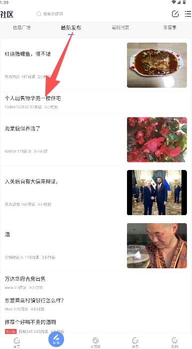 2、进入社区页查看最新发布等版块的图文帖子列表。