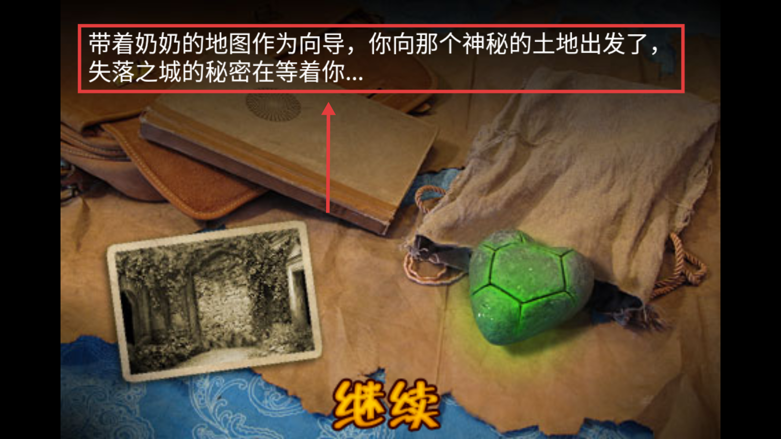 2、跟随剧情提示,以奶奶的地图为向导出发,后续归还【绿色心形石头】推进解谜。