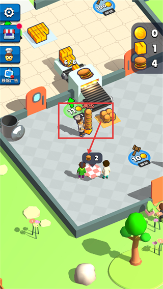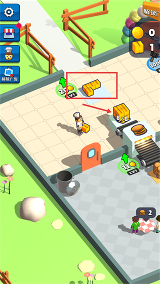 3、按指引完成食材堆叠,将成品交付顾客积累收益,同时解锁更多食材的加工权限,丰富烹饪品类。