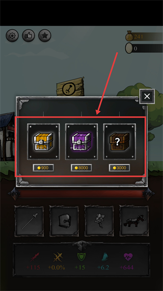 2、积累足够金币后,可选择【黄色宝箱】-【紫色宝箱】-【问号宝箱】开启,获取强力装备与奖励。